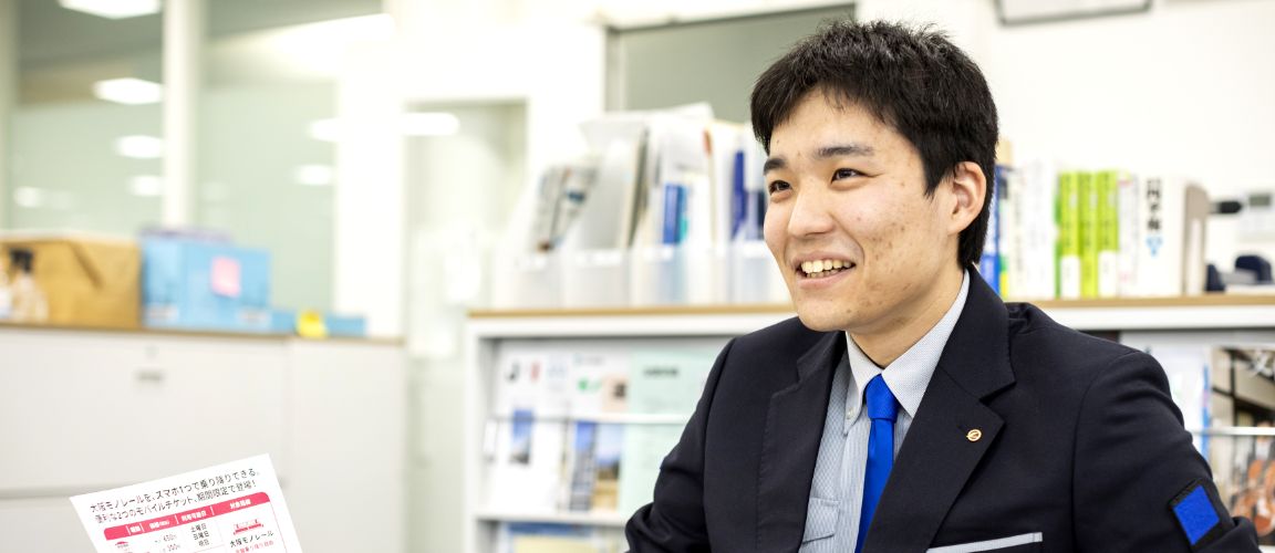 - 私が所属する運輸部業務課は、大阪モノレールの駅の運営を中心に、乗車券の企画・発売や需要喚起策の検討、運輸成績(旅客数・旅客収入等)の計上・分析など、営業に関わる業務全般を担う部署です。私は主に、需要喚起策の企画・実施を担当しています。その他にも運営に必要となる旅客営業規則などの制度設計、運賃収入の集計業務、他社との調整・清算業務にも携わっています。