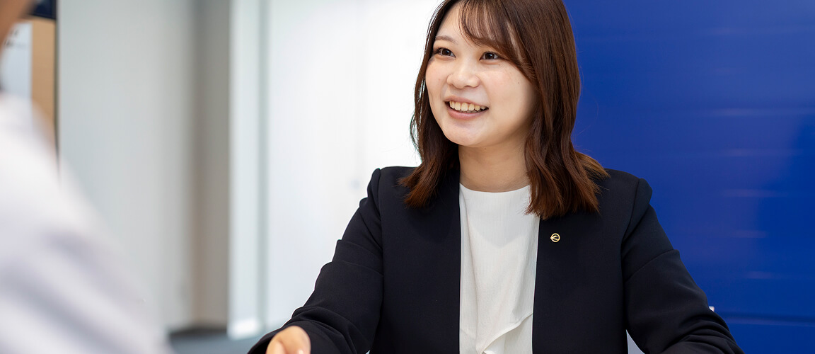 - 今は目の前の仕事に必死な毎日ですが、将来的には、先輩方のように会社全体を体系的に見て物事を判断できる人になりたいと思っています。そのために、ジョブローテーションでさまざまな部署を経験して視野を広げていきたいです。