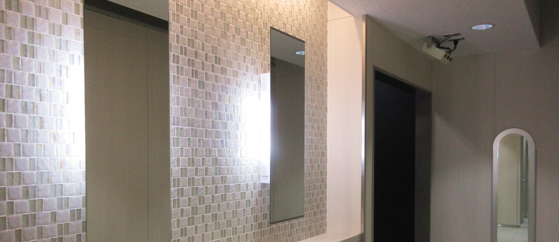- 入社してすぐ、モノレールの全18駅のトイレ改修工事で内装デザインを担当したことが印象に残っています。心がけたのは、お客さまに親しみをもって利用していただけるデザインです。昔ながらの公共の建物のトイレが持つ「汚い」というイメージを払拭できるよう、壁にあたたかみのある木目調を採用し、駅の関係者と色味などを相談しながら決めていきました。工事中はトイレが使えなくなるのはもちろん、立ち入り制限などでお客さまの動線も変わるので、さまざまな調整が必要でした。工事が完了し、完成したトイレを見たときは、とてもうれしかったです。自分のイメージしたものが実際に形になることを体感できました。