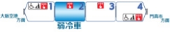 「弱冷車」は2号車(大阪空港方面から2両目)で、冷房温度を他の車両よりも少し高めに設定しています。冷え過ぎなど、冷房が苦手なお客さまだけでなく、真夏の暑い日には、外から車内への急激な温度変化による血圧や脈拍の変動、いわゆるクールショックの予防にも、『弱冷車』を上手にご活用ください。