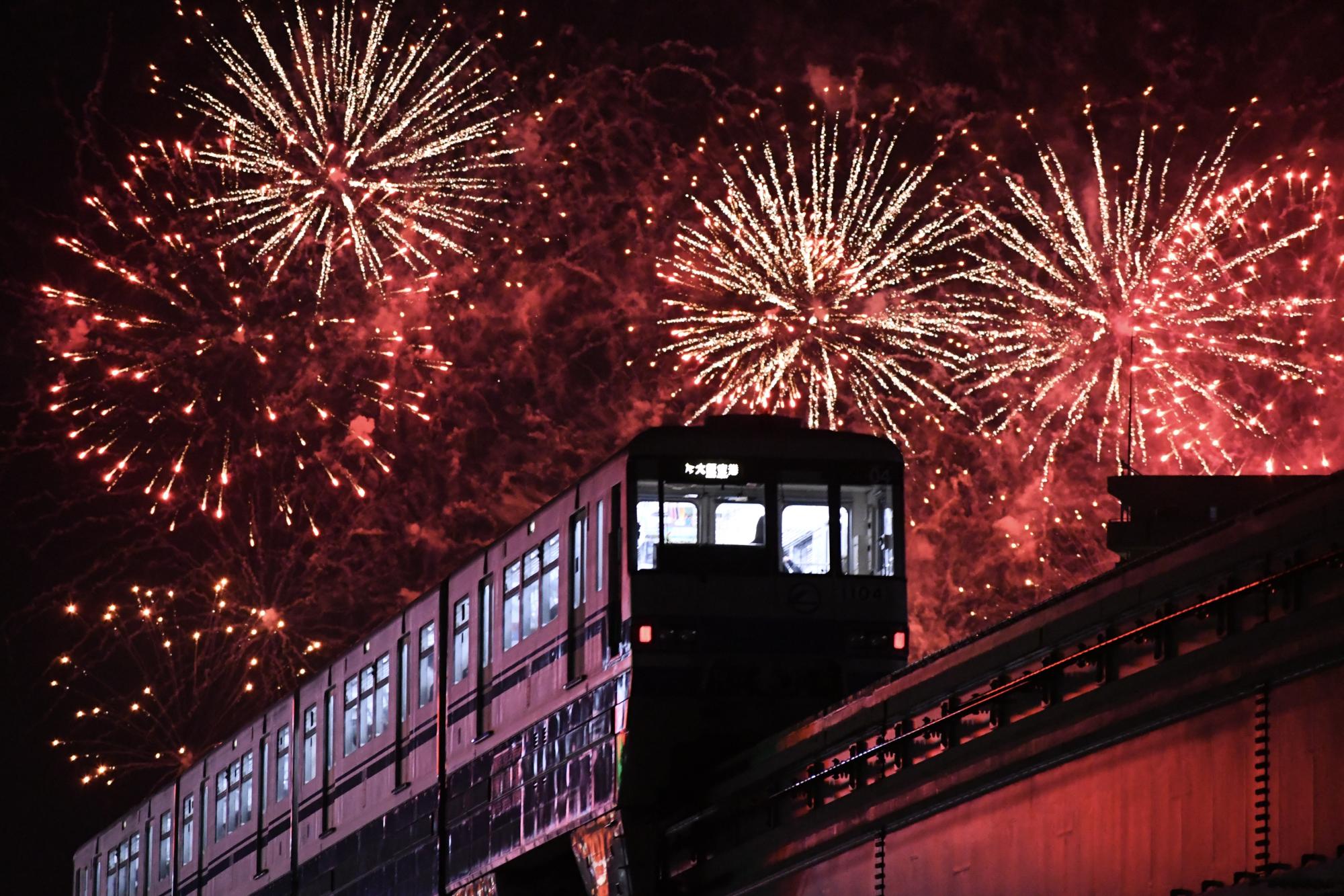 1・2月の積雪のシーンはシャッターチャンスが非常に限られる中、単なる貴重なシーンを残す、という撮り方ではなく、丁寧なフレーミングと光の選び方に惹かれました。カレンダーの華とも言える、3・4月には最新鋭3000系のコンセプトにぴったりな優しい春の風景が選ばれています。木々と3000系のフレーミングも的確で、カレンダーとしていつまでも飾っていたくなるようなしっかりとした構図です。5・6月はこの季節を象徴する紫陽花の一枚が選出されました。花にピントを合わせて列車をぼかすテクニックはそのボケの強弱が全体の仕上がりを左右しますが、こちらの一枚は、列車がボケていても「大阪モノレールである」ということが明確にわかるのがポイントです。7・8月には花火の写真が入り、日中の光景が続いてきたカレンダーの流れを変えてくれる、重要な一枚であるほか、花火のバランスと列車の存在感がちょうどよい比率で入っている写真です。9・10月は秋の彩りを横目に空を行く3000系ですが、真っ黄色に染まった銀杏と空の表情が美しく、写真全体の世界観が心地よい作品です。そして、11・12月には2025年に惜しまれながら1000系04編成が、本編成がデビューした大阪モノレール開業当時から慣れ親しんだ、沿線の夜景の中へと走り去る写真が選出され、この写真で本カレンダーを締めくくる形になりました。04編成が“去る”だけでなく、対向列車がヘッドライトを輝かせこちらに向かって“来る”というのも、年の瀬に相応しいカットです。