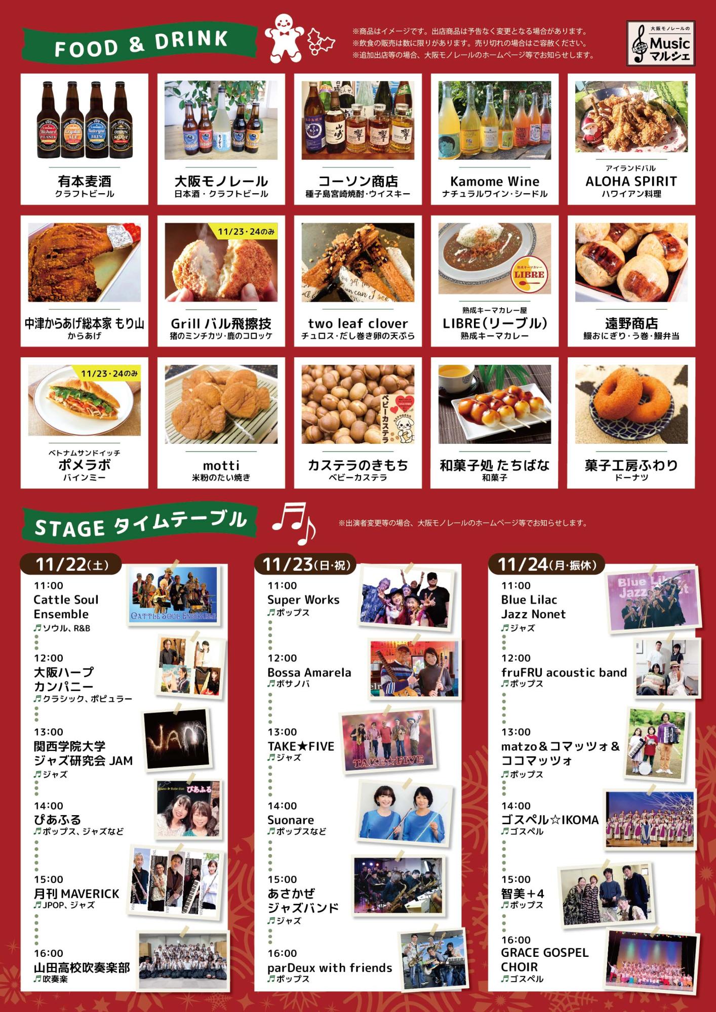 冬の訪れを感じるこの季節、万博記念公園駅の駅ナカで、音楽とグルメを楽しむことができる「Musicマルシェ」を開催します!