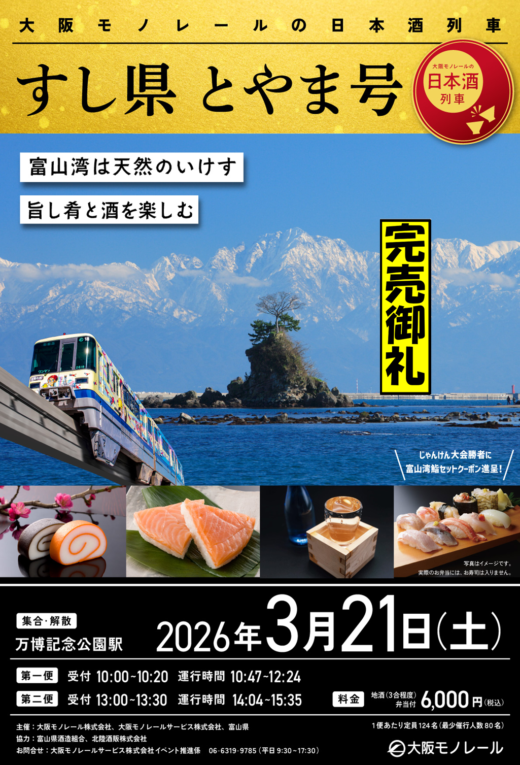 【完売御礼】大阪モノレールの日本酒列車 すし県 とやま号 を運行します!