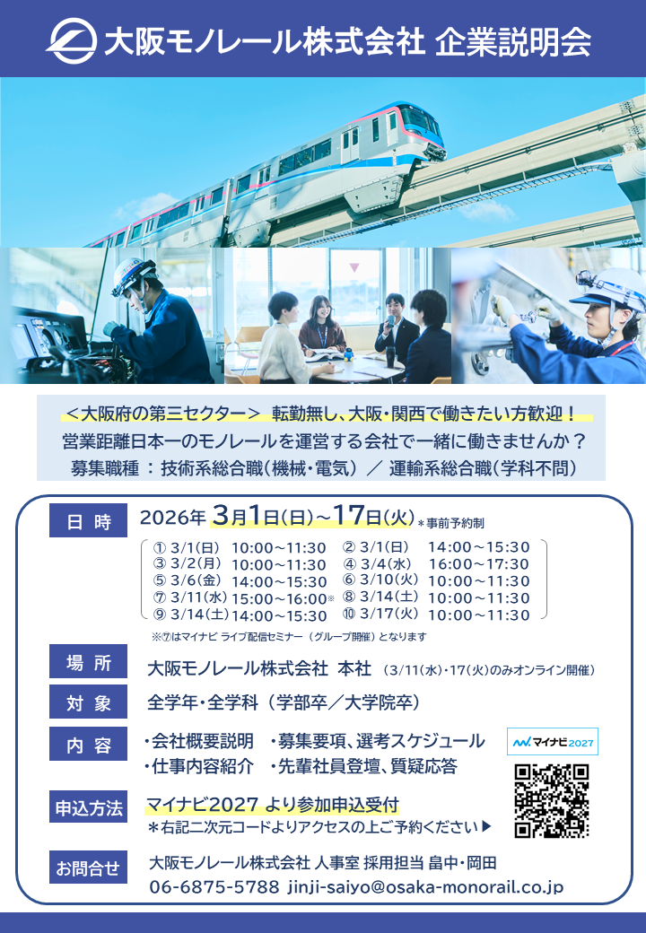 大阪モノレール株式会社 本社(3/11(水)・17(火)のみオンライン開催)