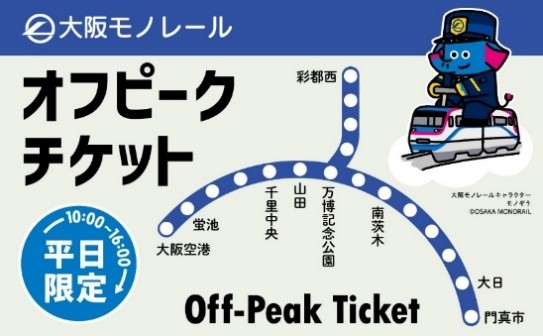 「休日満喫1dayチケット」と「オフピークチケット」は大阪モノレール全線乗り放題の乗車券です。大阪モノレール沿線施設や駅ナカ店舗の優待特典もございます。