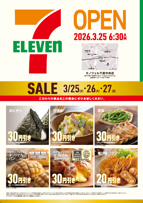 ※こちらは、セブンーイレブンモノウェル千里中央店のご案内です。