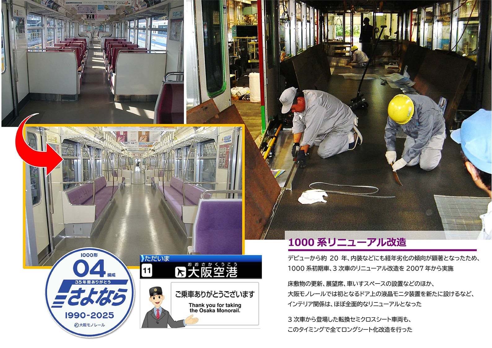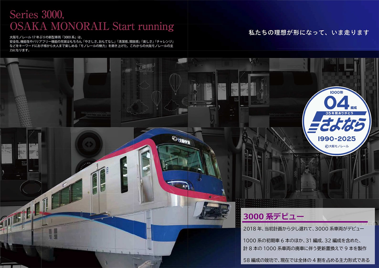大阪モノレールの開業当初から運行していた1000系 01編成~06編成(初期車)のうち、