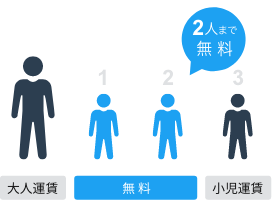 幼児が乗車券を所持する6歳以上のお客さま(団体旅客を除く)と同伴する場合、2人まで無料です。