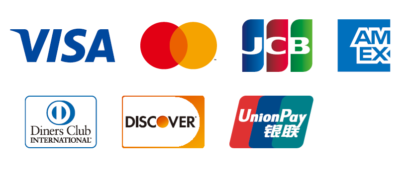 Visa、Mastercard、JCB、American Express、Diners Club、Discover、銀聯