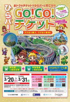 ひらパーGo!Go!チケットは、大阪モノレール全線・京阪電車の指定区間が乗り降り自由で、ひらかたパークの入園券・特典がセットになっています。